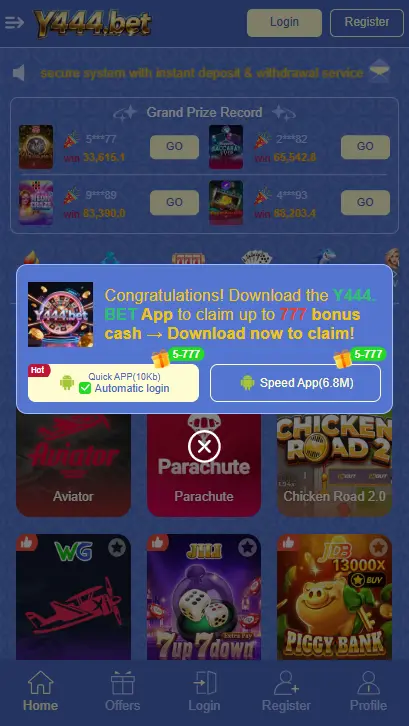 Y444 is an online real-earning application that combines entertainment with earning opportunities. Think of it as a digital casino in your pocket, but much simpler and friendlier to use. The Y 444 app offers dozens of games, from classic favorites like Ludo to exciting options like Aviator and Mines.